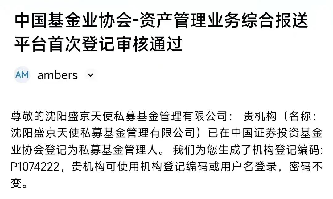 沈阳DB真人旗舰天使私募基金治理有限公司喜过中基协基金治理人挂号审核