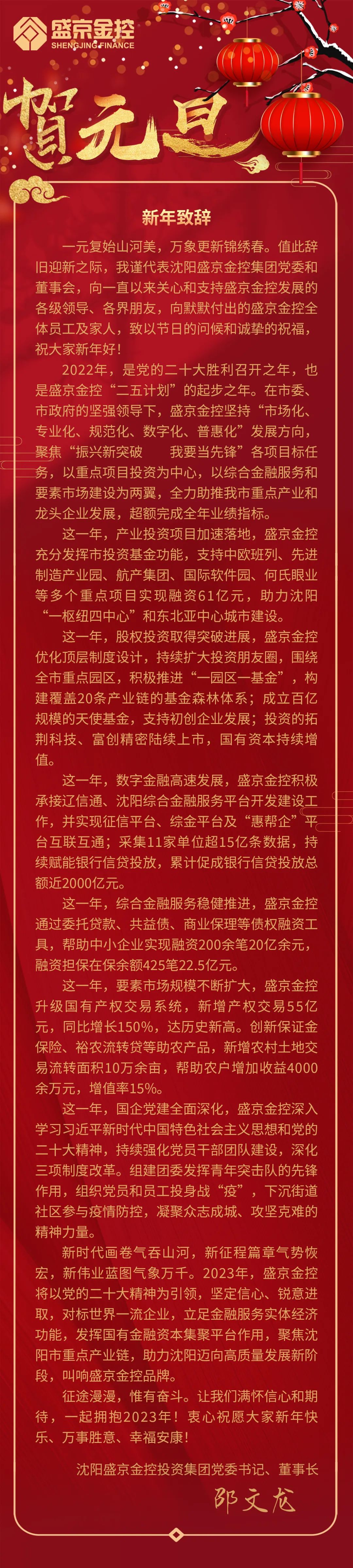 工业培育新突破 金融助企领先锋——DB真人旗舰金控集团董事长新年致辞
