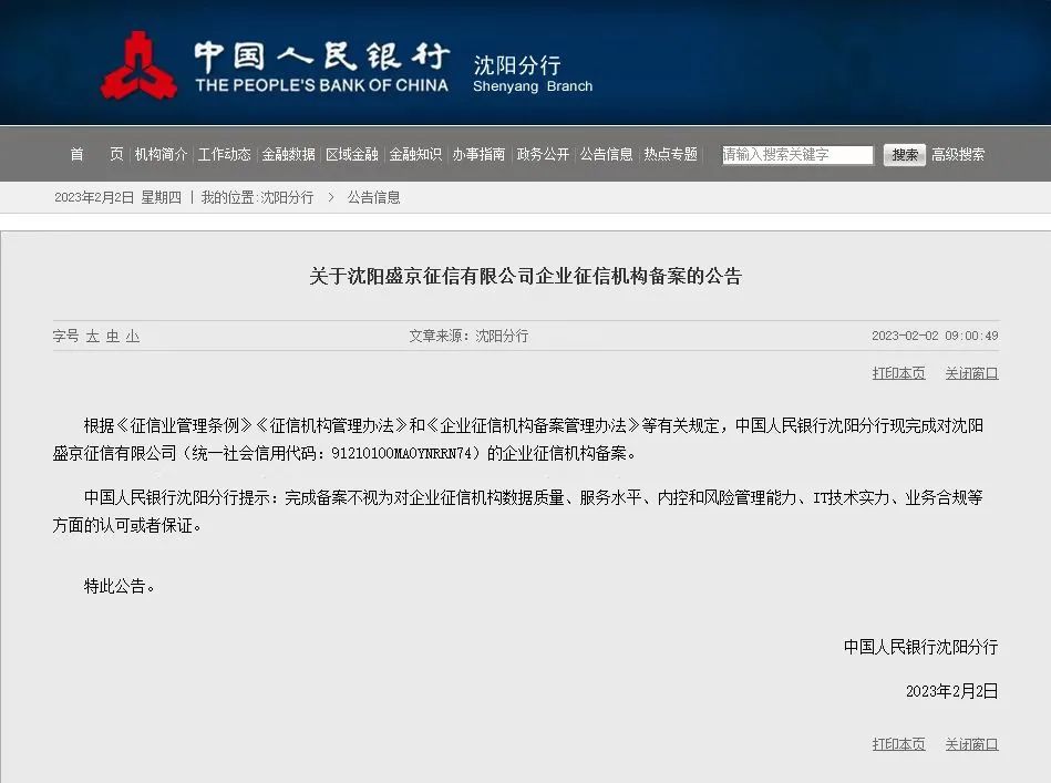 2月2日,人民银行沈阳分行宣布通告,凭据《征信业治理条例》《征信机构治理步伐》《征信业务治理步伐》及《企颐魅征信机构备案治理步伐》等有关划定,沈阳DB真人旗舰征信有限公司(简称“DB真人旗舰征信”)正式获得中国人民银行企颐魅征信机构备案,成为沈阳首家国有企颐魅征信机构。这是沈阳市国有企业获得的首张由中央金融监管部分宣布的征信牌照,也标记着沈阳企颐魅征信平台建设生长实现了里程碑式的突破。