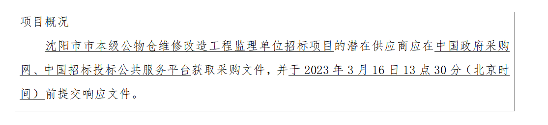 (沈阳市市本级公物仓维修革新工程监理单位招标)采购通告